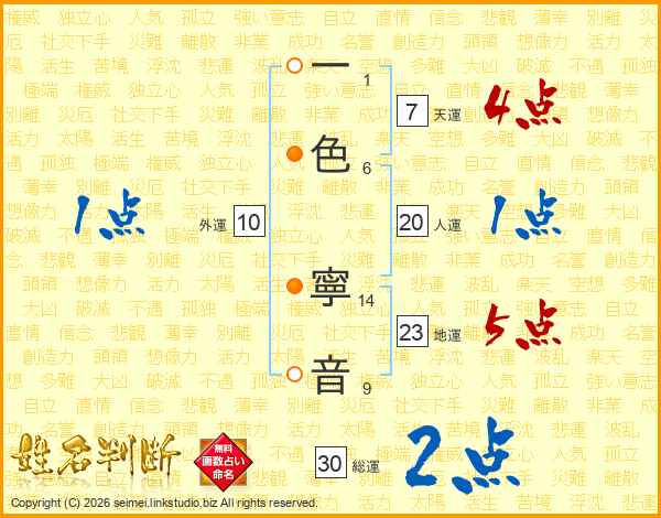一色寧音さんの総運は30画の2点!