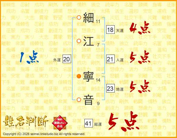 細江寧音さんの総運は41画の5点!