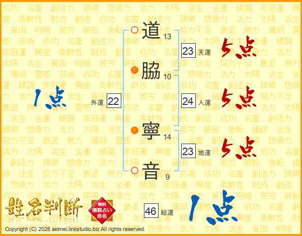 道脇寧音さんの総運は46画の1点!