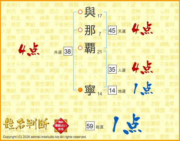 與那覇寧さんの天運は45画の4点!