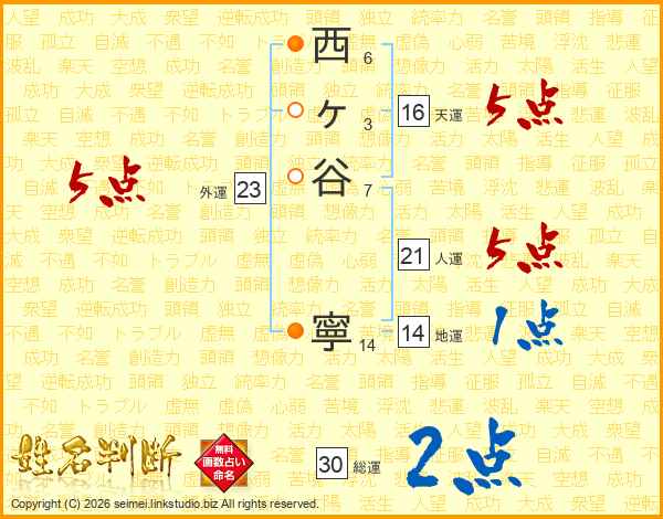 西ヶ谷寧さんの総運は30画の2点!