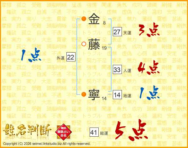 金藤寧さんの総運は41画の5点!