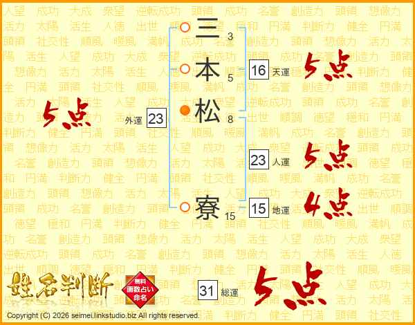 三本松寮さんの総運は31画の5点!