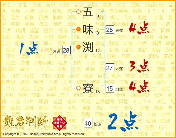 五味渕寮さんの総運は40画の2点!