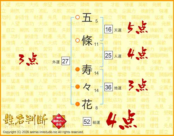 五條寿々花さんの総運は52画の4点!