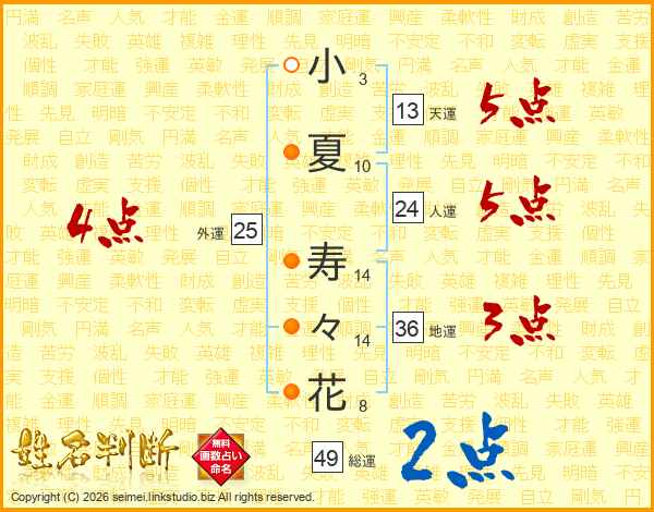 小夏寿々花さんの総運は49画の2点!