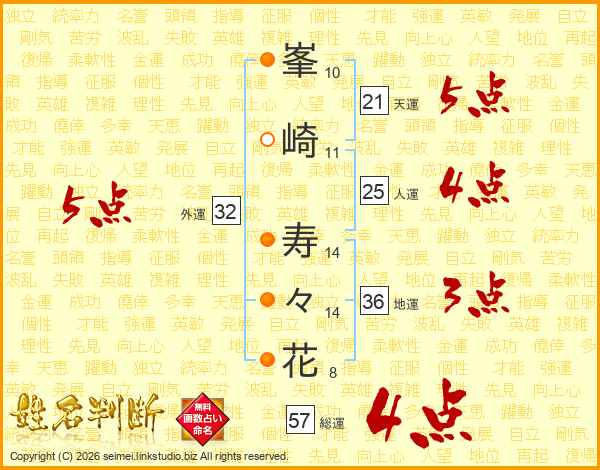 峯崎寿々花さんの外運は32画の5点!