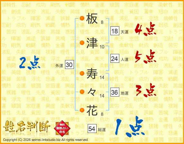 板(8画)津(10画) 寿(14画)々(14画)花(8画)