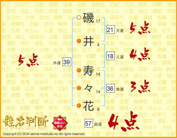 磯井寿々花さんの総運は57画の4点!