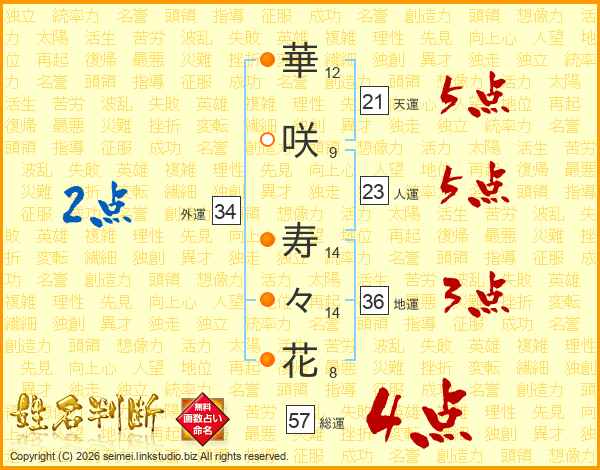 華(12画)咲(9画) 寿(14画)々(14画)花(8画)