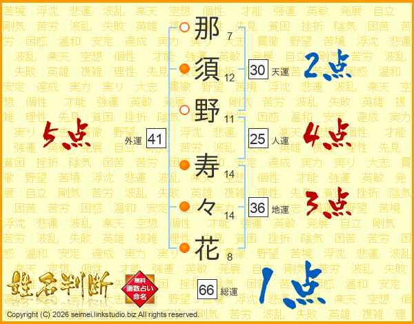 那須野寿々花さんの総運は66画の1点!