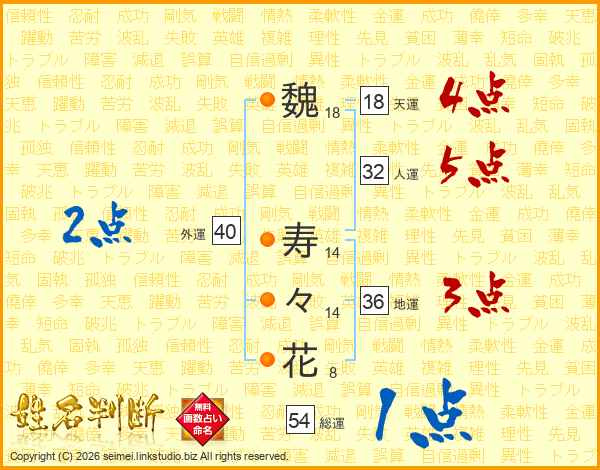 魏寿々花さんの総運は54画の1点!