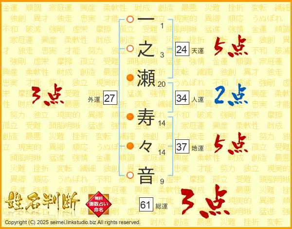 一之瀬寿々音さんの地運は37画の5点!