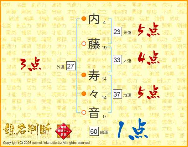 内(4画)藤(19画) 寿(14画)々(14画)音(9画)