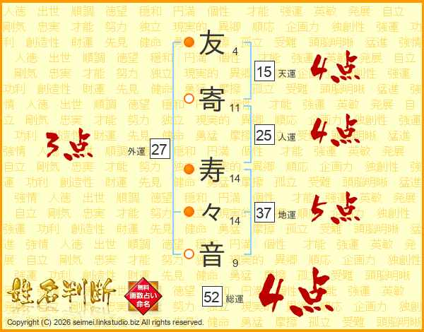 友寄寿々音さんの総運は52画の4点!