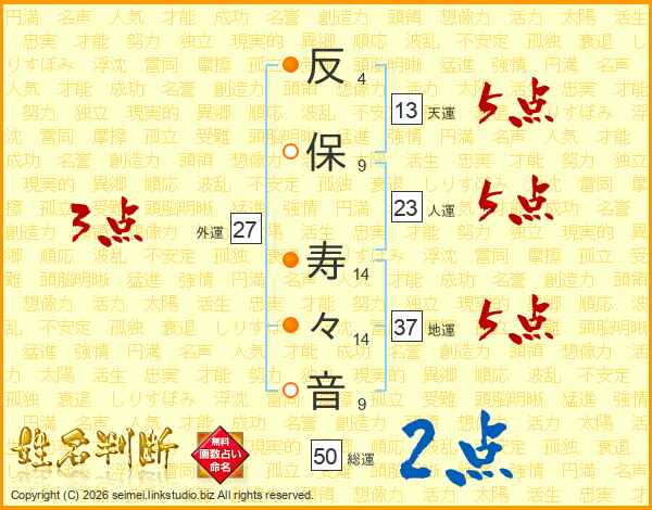 反保寿々音さんの天運は13画の5点!