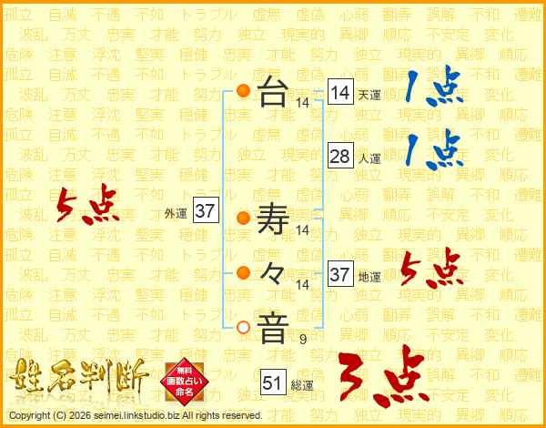 台寿々音さんの総運は51画の3点!