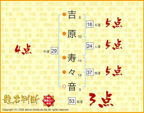 吉原寿々音さんの総運は53画の3点!