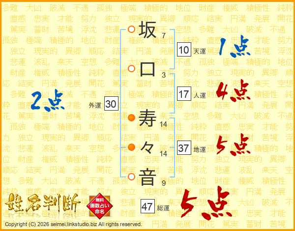 坂口寿々音さんの総運は47画の5点!