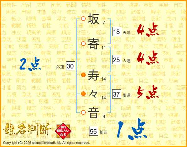 坂寄寿々音さんの地運は37画の5点!