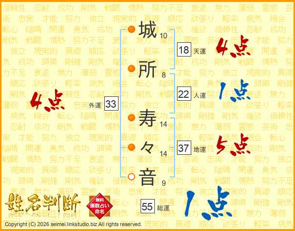 城(10画)所(8画) 寿(14画)々(14画)音(9画)