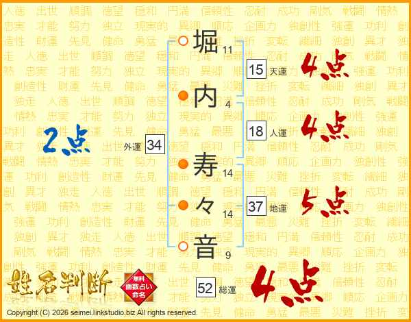 堀(11画)内(4画) 寿(14画)々(14画)音(9画)