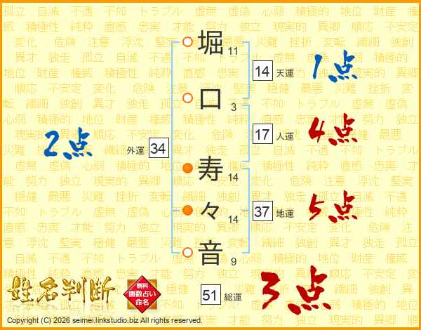 堀口寿々音さんの総運は51画の3点!