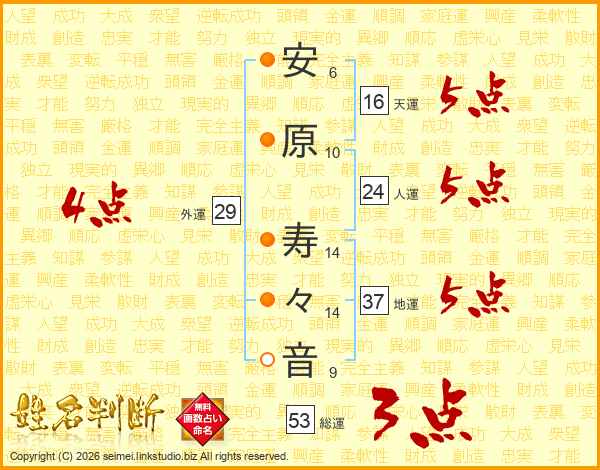 安原寿々音さんの天運は16画の5点!