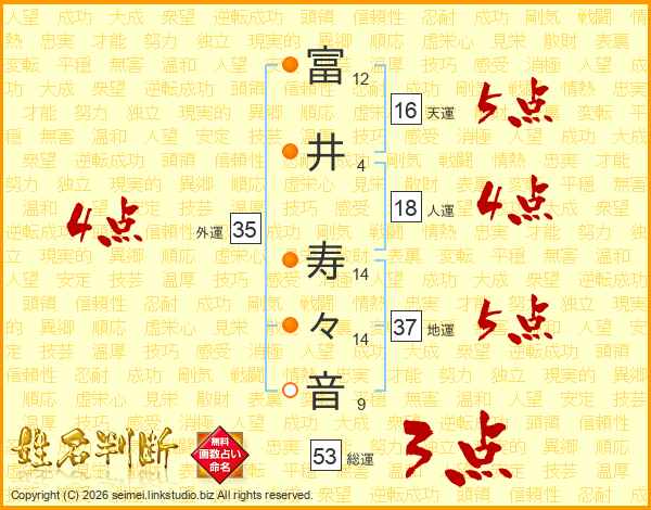 富(12画)井(4画) 寿(14画)々(14画)音(9画)