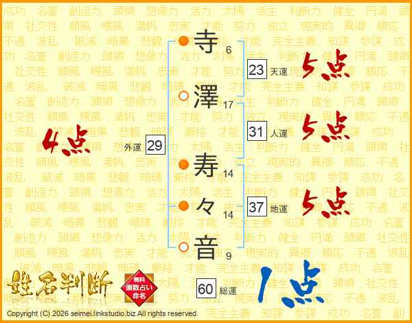 寺(6画)澤(17画) 寿(14画)々(14画)音(9画)