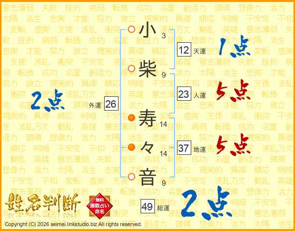 小柴寿々音さんの総運は49画の2点!