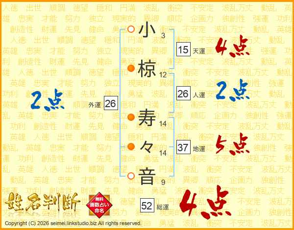 小椋寿々音さんの総運は52画の4点!