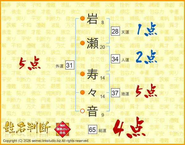 岩瀬寿々音さんの総運は65画の4点!