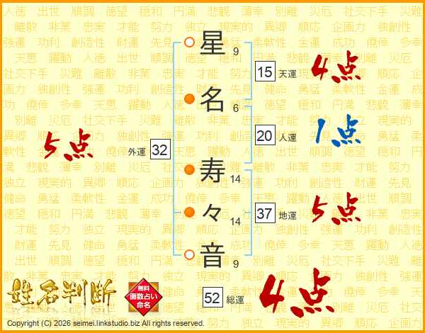 星(9画)名(6画) 寿(14画)々(14画)音(9画)