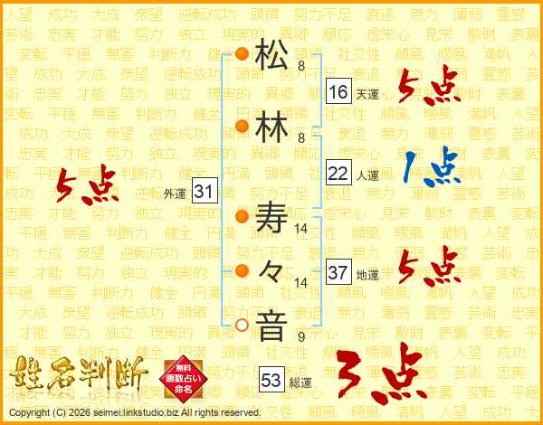 松(8画)林(8画) 寿(14画)々(14画)音(9画)