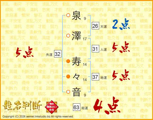 泉澤寿々音さんの総運は63画の4点!