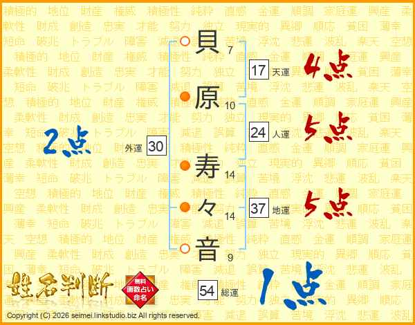 貝原寿々音さんの地運は37画の5点!