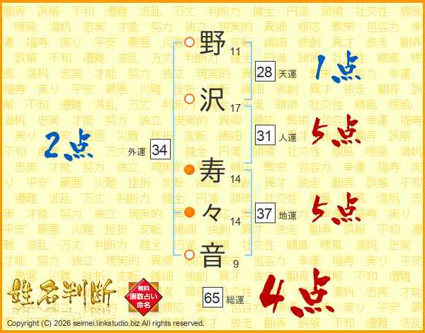 野沢寿々音さんの総運は65画の4点!