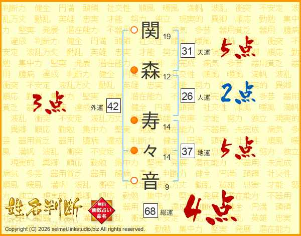関森寿々音さんの地運は37画の5点!