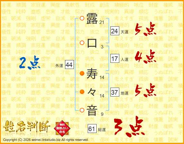 露口寿々音さんの外運は44画の2点!
