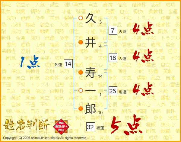 久(3画)井(4画) 寿(14画)一(1画)郎(10画)