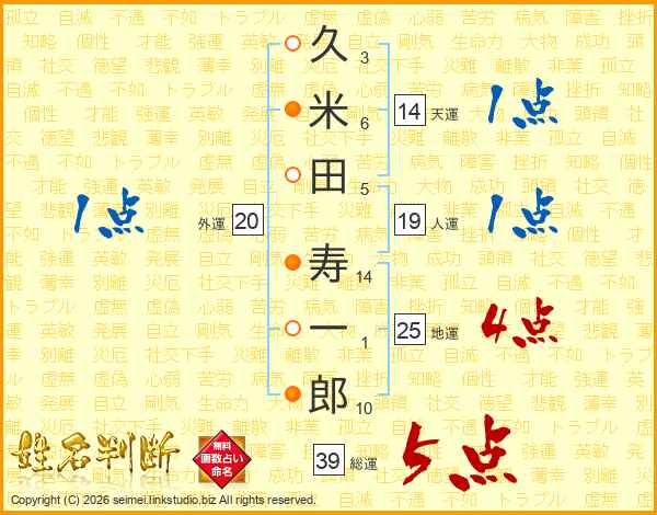 久米田寿一郎さんの総運は39画の5点!