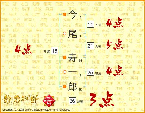 今尾寿一郎さんの天運は11画の4点!