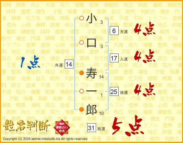 小口寿一郎さんの総運は31画の5点!