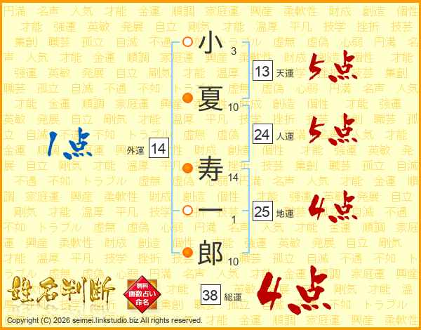 小夏寿一郎さんの総運は38画の4点!