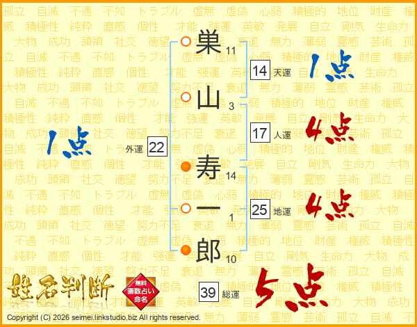 巣山寿一郎さんの総運は39画の5点!
