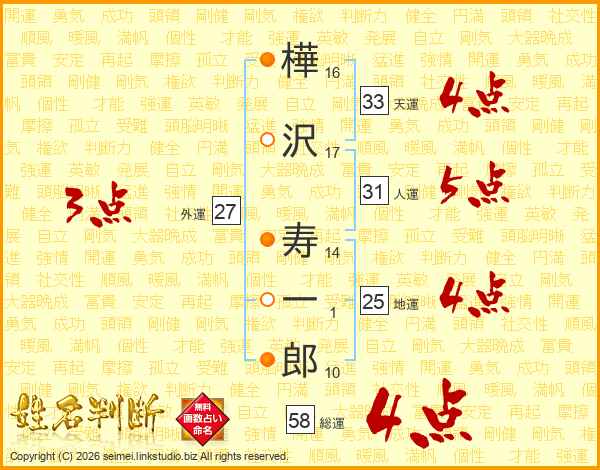 樺(16画)沢(17画) 寿(14画)一(1画)郎(10画)