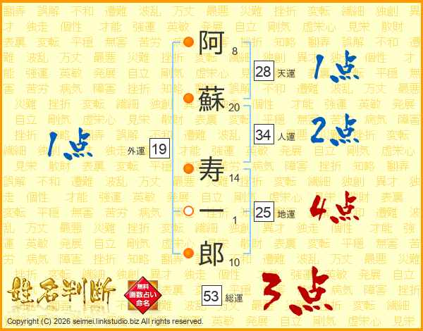 阿蘇寿一郎さんの総運は53画の3点!