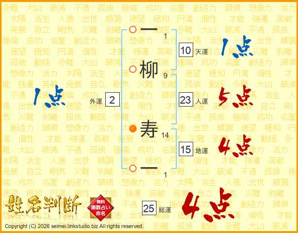 一柳寿一さんの総運は25画の4点!
