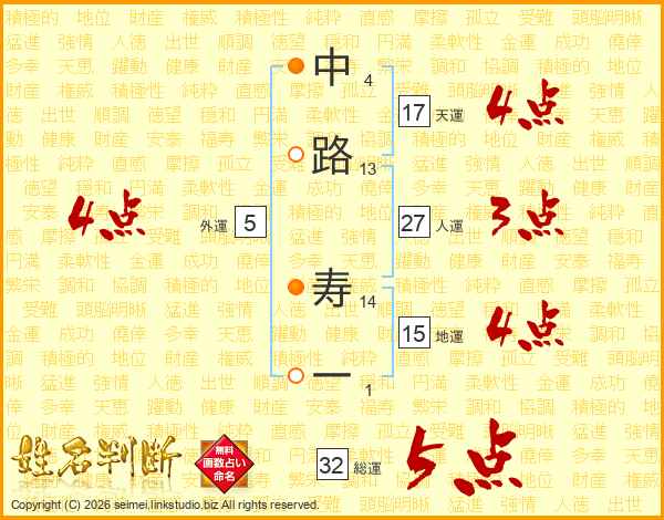 中路寿一さんの天運は17画の4点!